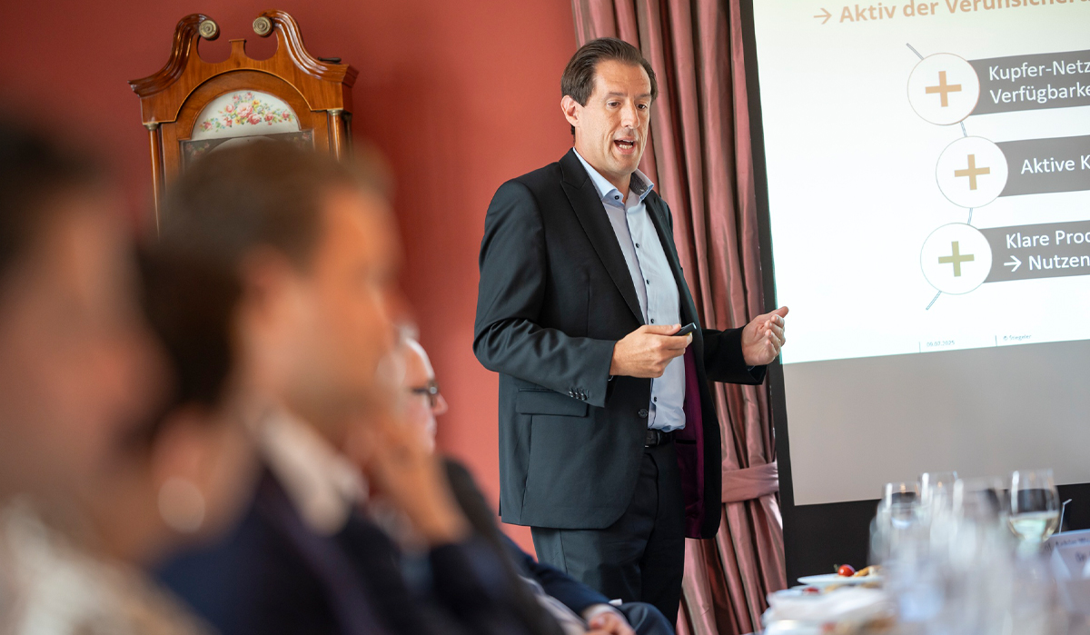 Im Rahmen eines Impulsvortrags brachte Geschäftsführer Felix Stiegeler die Sicht eines regionalen Anbieters ein. Er schilderte die Herausforderungen und Fortschritte beim Glasfaserausbau in ländlichen Regionen Baden-Württembergs – und machte deutlich, dass verlässliche Kommunikation und faire Wettbewerbsbedingungen entscheidende Faktoren für den Erfolg sind.